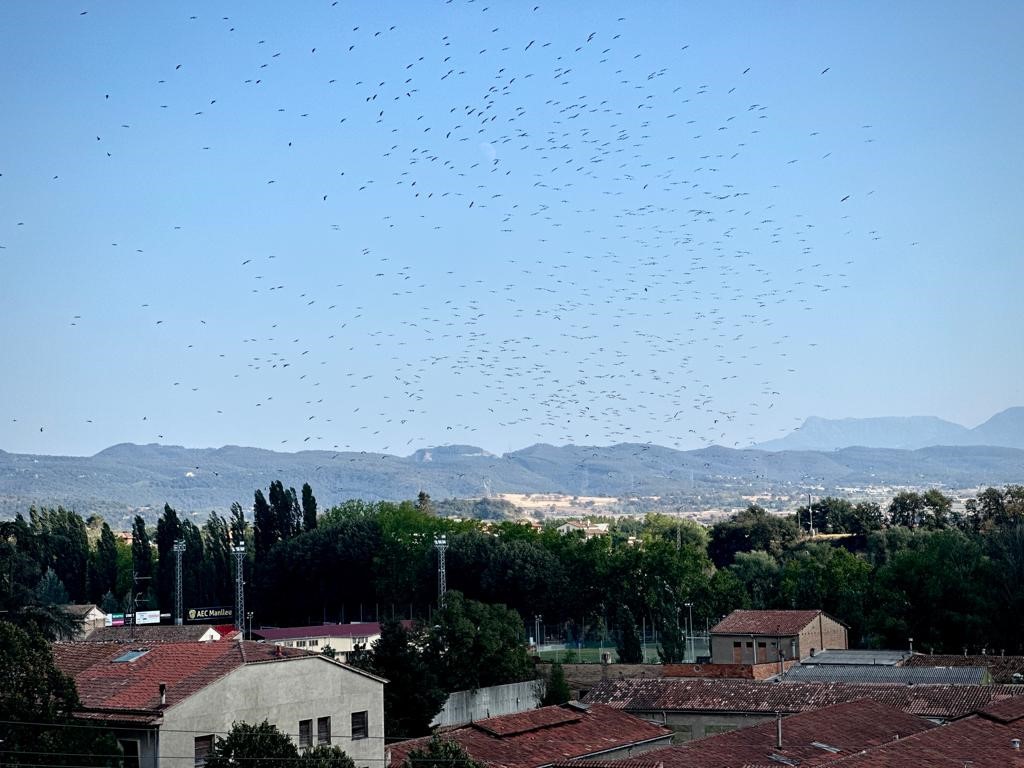 En aquesta època de l'any, és habitual trobar-se amb aquest fenomen. Centenars de cigonyes creuen el cel manlleuenc en direcció cap a l'Àfrica subsahariana. Es troben en plena ruta migratòria, venen del nord d'Europa i viatgen fins a zones més càlides per passar l'hivern.