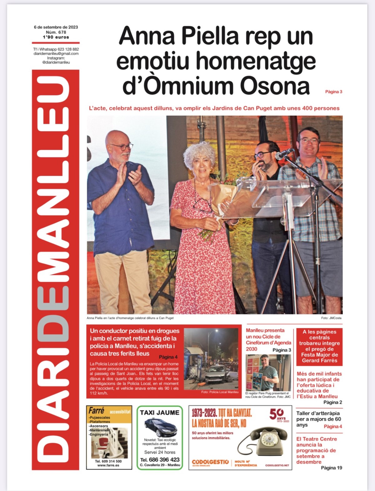 Aquesta és la portada del "Diari de Manlleu" d'avui dimecres, 6 de setembre del 2023.