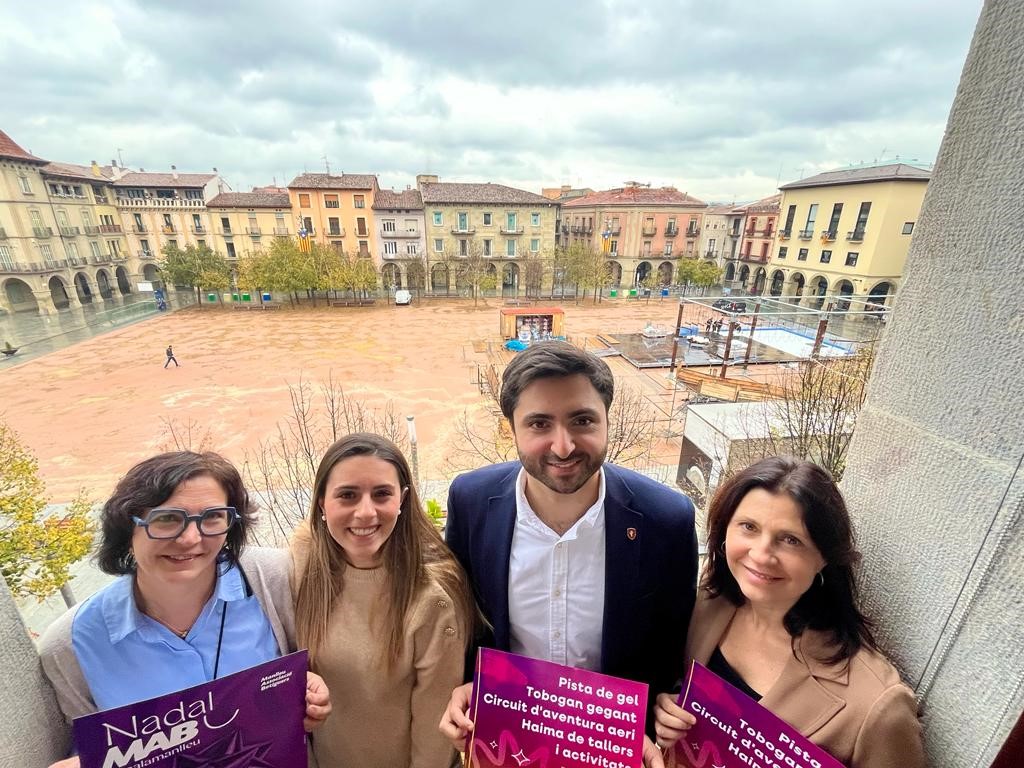 Des de ja fa uns quants dies que la plaça Fra Bernadí s’està equipant amb la pista de gel i el parc d’aventura que, durant 33 dies, donarà el tradicional ambient nadalenc a la ciutat amb la celebració d’una nova edició del Badanadal.