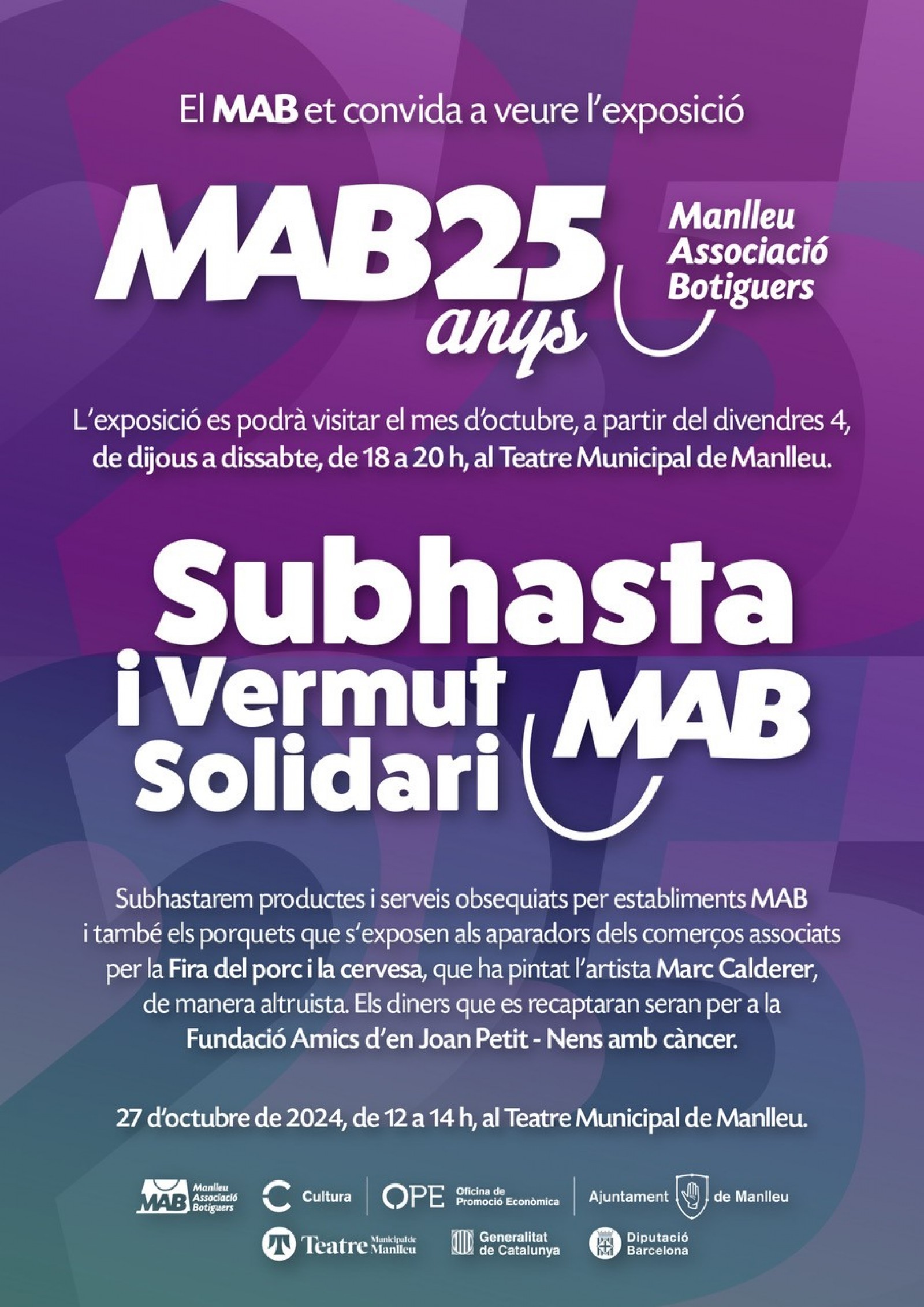 La presidenta del MAB, Albina Vilalta, va dirigir un acte on van participar també expresidents com Pere Puig, comerciants emblemàtics del municipi com Josep Tarradellas de Can Cerilles o la regidora de comerç, Carla López, entre d’altres. Es va destacar la implicació de l’empresa Hidra en la dinamització del comerç local al llarg d’aquests 25 anys i, després de l’acte, es va fer un aperitiu al vestíbul del Teatre. A l’equipament, a la primera planta, es pot veure fins a finals d’octubre una