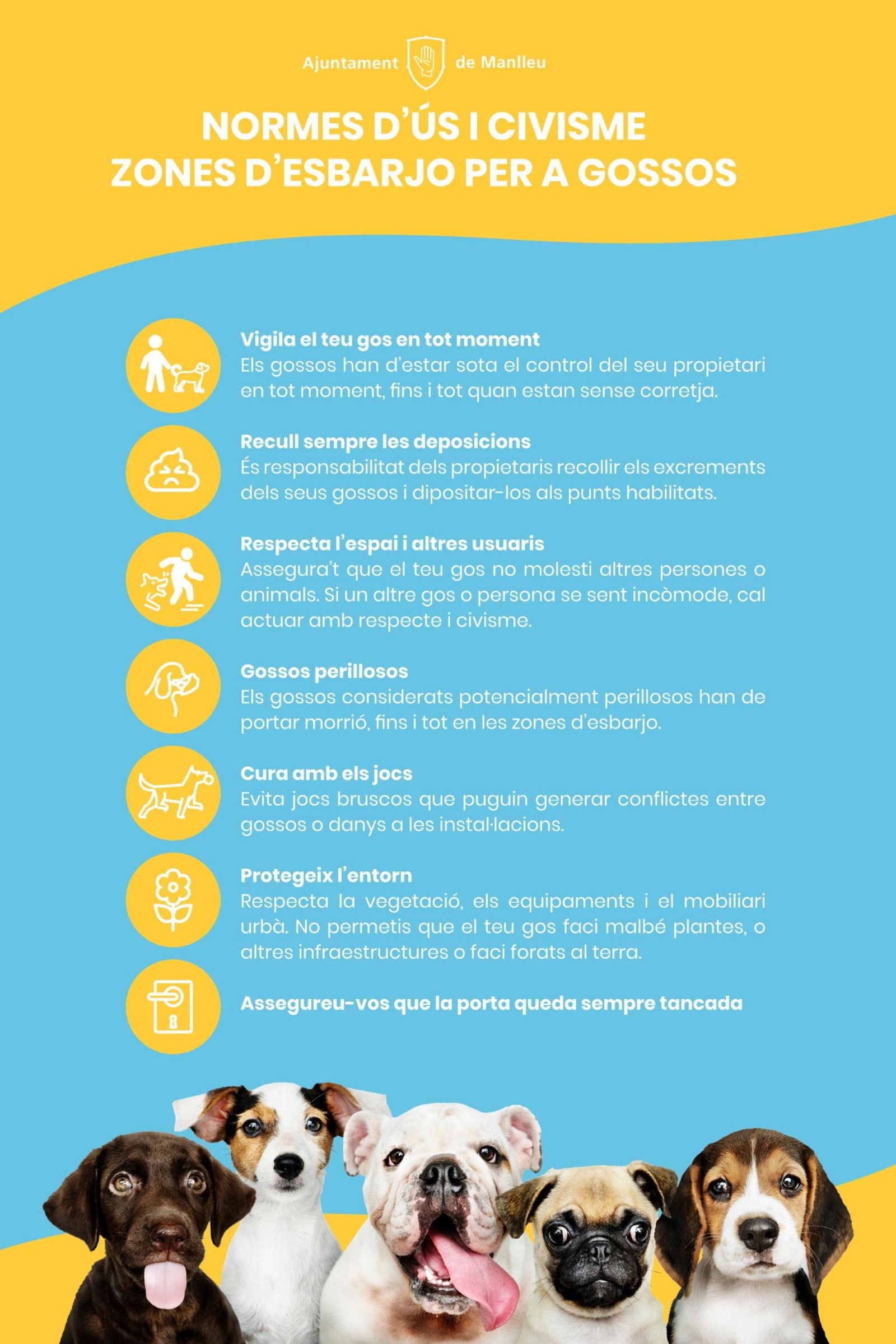 Davant d'algunes situacions d’incivisme observades en les zones d’esbarjo per a gossos, l’Ajuntament de Manlleu ha posat en marxa una nova campanya per sensibilitzar als usuaris sobre la