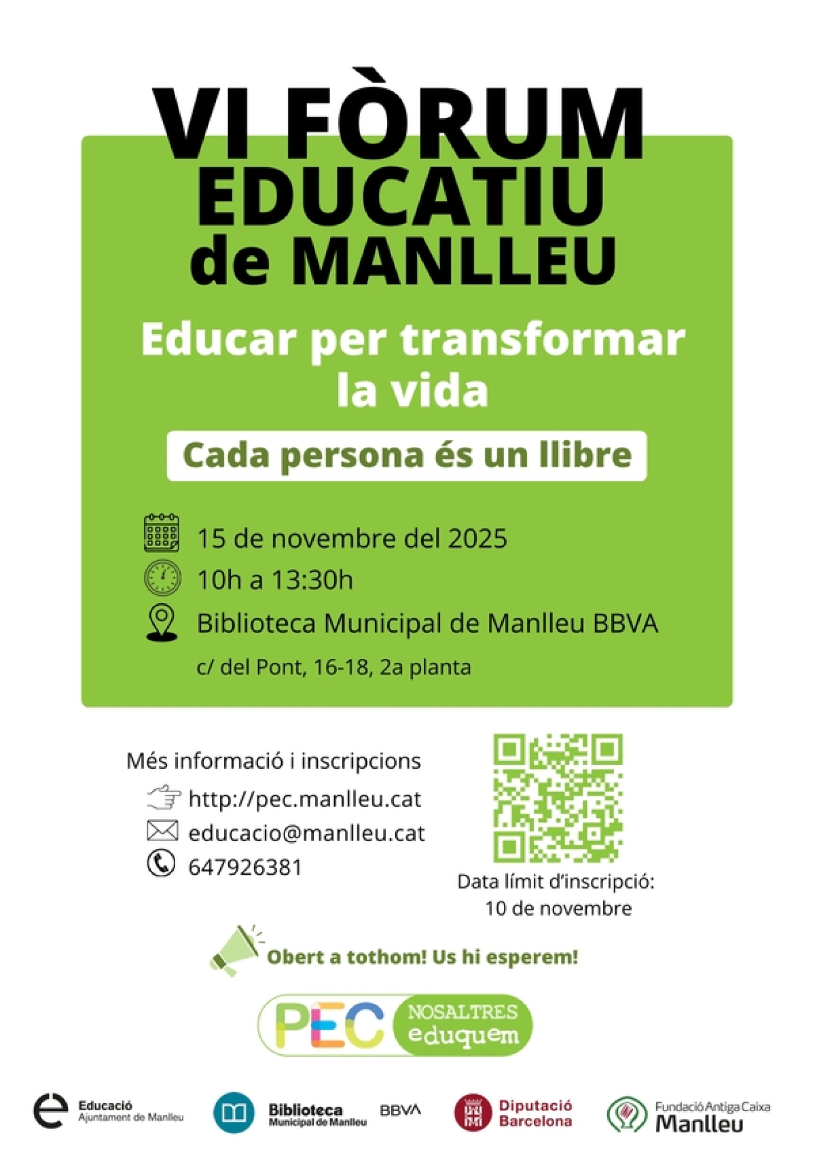promoguda pel Projecte Educatiu de Ciutat (PEC), esdevé un espai obert pel debat entorn de l’educació a Manlleu.
