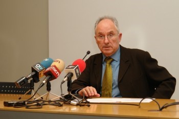 El Síndic de Greuges de Catalunya, Rafael Ribó, a la roda de premsa convocada al Museu Industrial del Ter de Manlleu