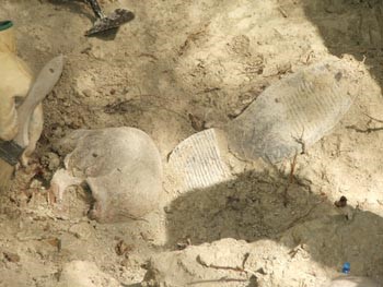 Un crani i una sola de sabata, algunes de les restes trobades a la fossa