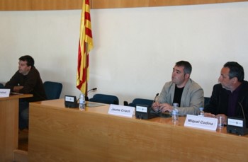 L'enginyer, Albert Trabal, (esquerra) amb Jaume Criach, conseller comarcal i el responsable tècnic, Miquel Codina