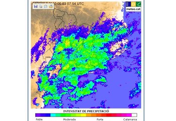 Segons el SMC, localment es podrà superar el llindar d'intensitat de més de 20 litres en 30 minuts i les precipitacions podran anar acompanyades de tempesta. L'episodi de mal temps es preveu que continuï aquest dimarts.