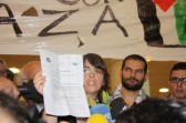 La cooperant propalestina Laura Arau mostra un document que els ha donat l'estat d'Israel