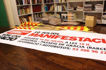 Una pancarta de les que ha elaborat Òmnium Cultural