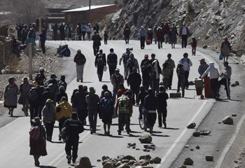 Un grup de ciutadans camina per una carretera bloquejada a la regió de Potosí. Foto: Reuters / David Mercado