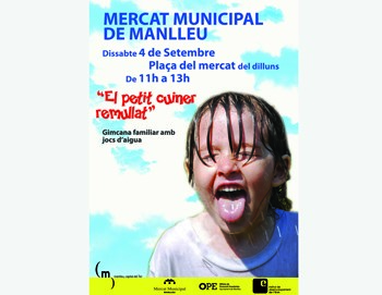 Aquest dissabte, dia 4 de setembre, al Mercat Municipal provisional de Manlleu ubicat a la plaça del Mercat dels dilluns shi instal·larà una gimcana familiar amb jocs daigua titulada El petit cuiner remullat.