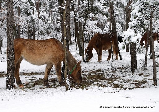 Una foto de la neu a Sant Bartomeu del Grau, amb bestiar pasturant. Foto: Xavier Sanfeliu