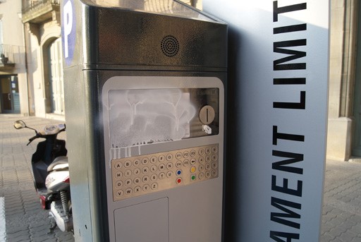 La pintada ocupa tota la pantalla i impedeix veure la zona de pagament seleccionada i l'hora que s'esgota el tiquet.