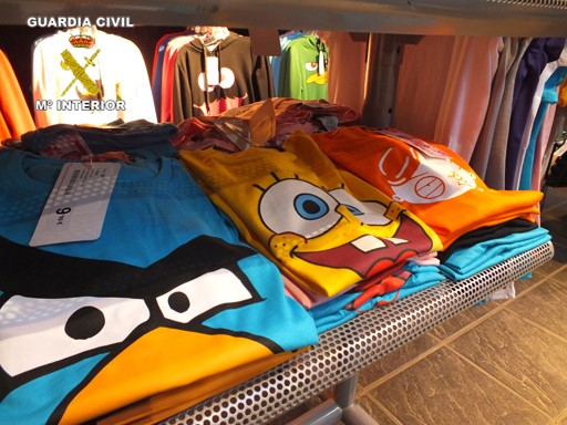 Segons el cos policial, la roba presentava estampacions de logos i personatges falsificats, els drets registrats dels quals pertanyen a "Heineken, Carlsberg, Coronita, Pringles, Bob Esponja, Monstruo de la Galletas, Margarita de Guru, Monter Energy, Duff, Champiñón de Nintendo, Angry Bird, Calimero i Mario Bros". La roba estava exposada per a la venda pública i la Guàrdia Civil "ha confirmat mitjançant les marques originals que es tractava de falsificacions".