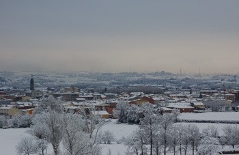 Una imatge panoràmica de Manlleu nevat