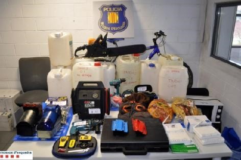 Els robatoris es feien en establiments diversos, i és per això que els Mossos d'Esquadra van recuperar molts tipus d'objectes. Predominaven els articles informàtics però, fruit dels escorcolls, també es van trobar pernils o corretges de gos. De totes maneres, el que sí que intentaven els presumptes lladres era aconseguir diners o objectes no molt grans que poguessin col·locar fàcilment.