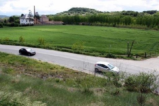 Una imatge de la carretera on s`ha produït l'accident, de Manlleu cap a Sant Hipòlit, amb el Cau Faluga de fons
