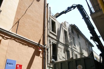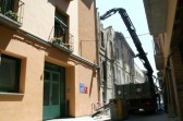 Aquesta setmana han començat els treballs per tirar a terra l'edifici de Can Llabrés, situat al carrer Enric Delaris de Manlleu. Des de dilluns les grues ja estan treballant a la zona.
