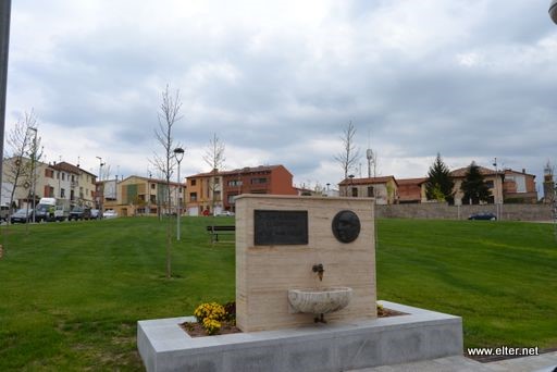 Una imatge de la font i la placa dedicada al doctor Oliveras